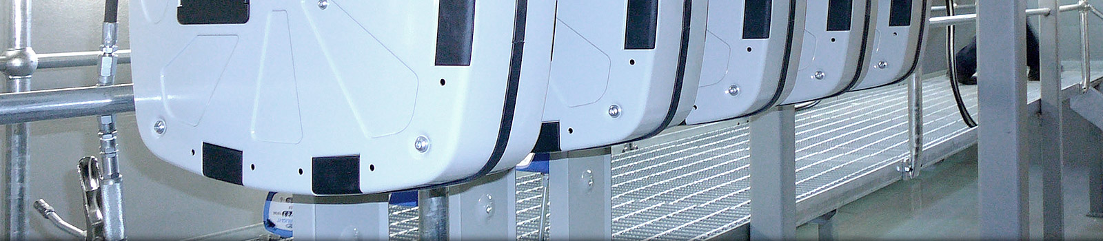 Encased lubrication hose reels mounted to roof of suspended ceiling workshop pit, reels shown include reel enclosures