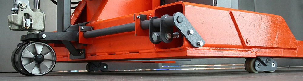 Hydraulic pallet jack for front and at rear wheels, Ground clearance 100mm, all wheels with sealed roller bearings |