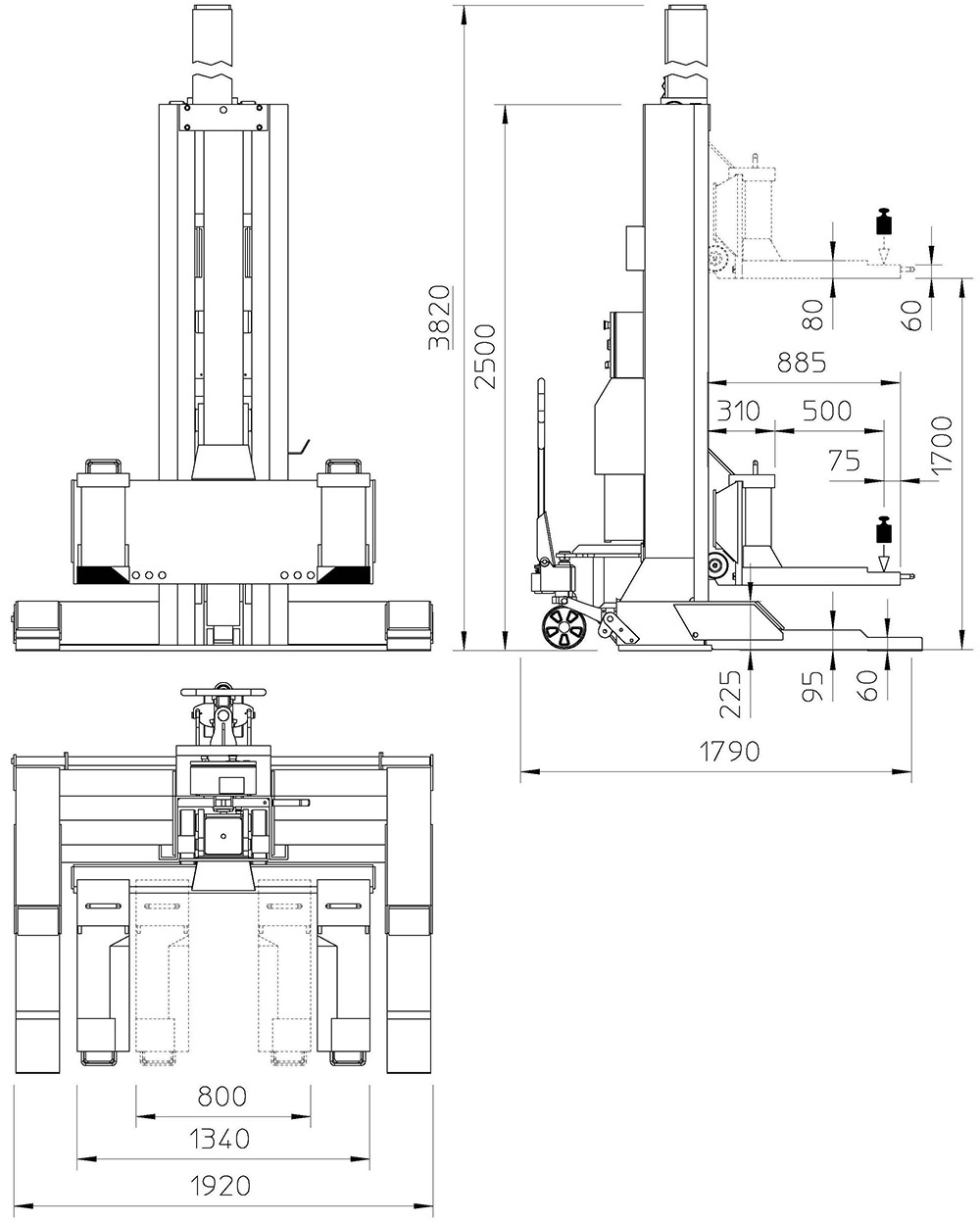60 Tonne (1 master, 3 slave columns) |